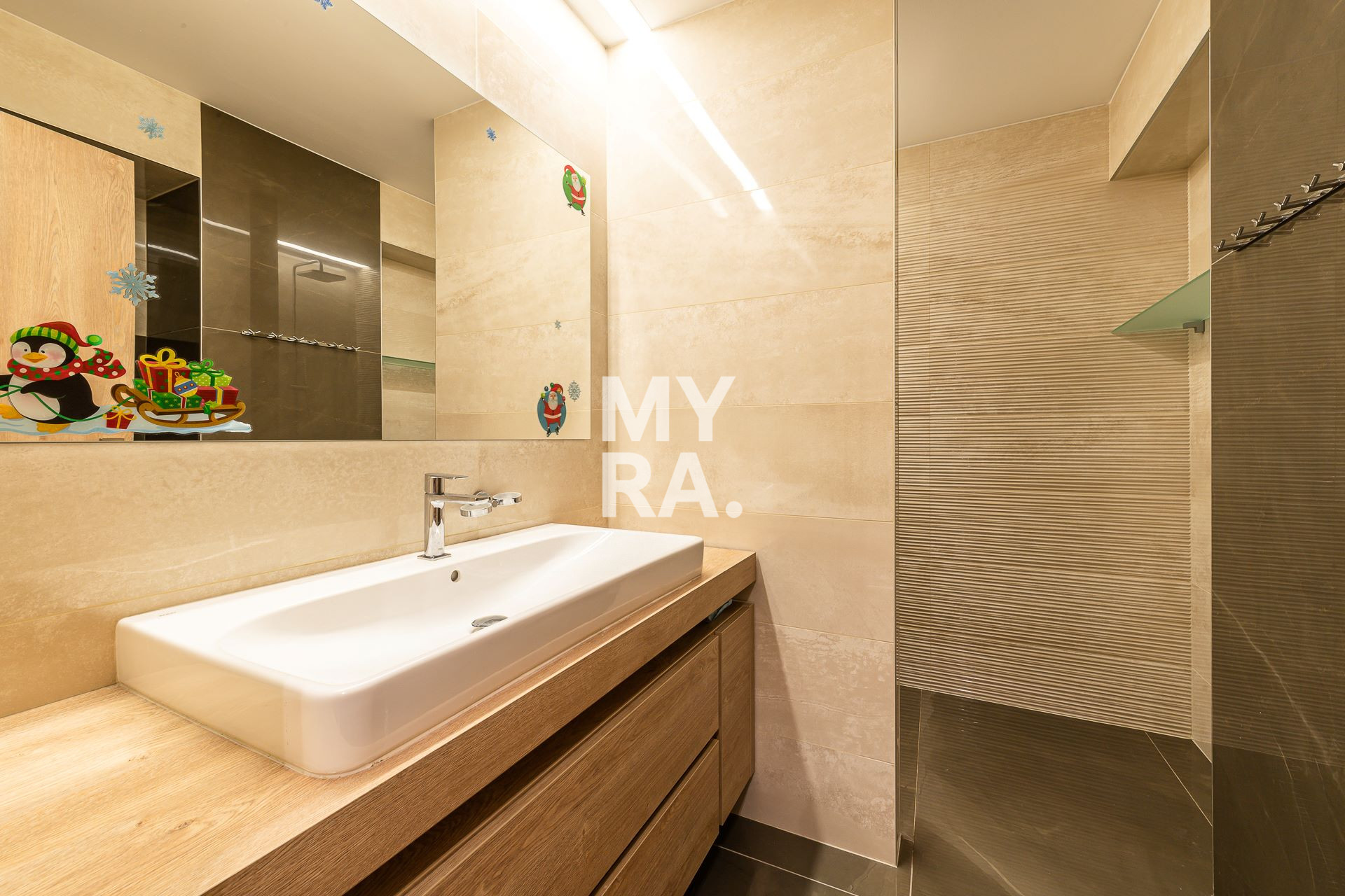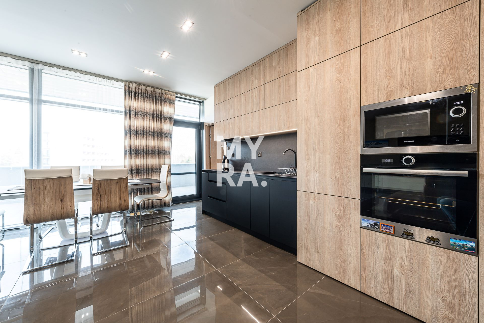 Kuchyňa s jedálňou je plne vybavená modernými vstavanými spotrebičmi a má vstup na rozľahlú vyhrievanú terasu na posedenie s pohárom vína s exkluzívnym pohľadom na Tatranskú scenériu. Moderná a štýlová spálňa disponuje en-suite kúpeľňou s bidetom, toaletou a sprchovým kútom. Priamo z lôžka po prebudení vás uvíta slnkom zaliaty "Lomničák". V izbách sa nachádza moderný nábytok vyrobený na mieru a elegantné dekoračné prvky, ktoré prispievajú k útulnej a komfortnej atmosfére. V obývacej miestnosti je kvalitná kožená pohovka s 2 odkladacími priestormi, barovým stolíkom, elektrickým polohovateľným kreslom a rozkladacím lôžkom, ktorá má dostatok miesta pre pohodlné sedenie a oddych, a taktiež kreslá s nádherným dizajnom, ktoré dotvárajú luxusný vzhľad miestnosti spolu s dizajnovým kameninovým rozkladacím stolom pre 8 osôb. V hornej aj dolnej kúpeľni je k dispozícii moderný sprchovací kút s bohatým priestorom.