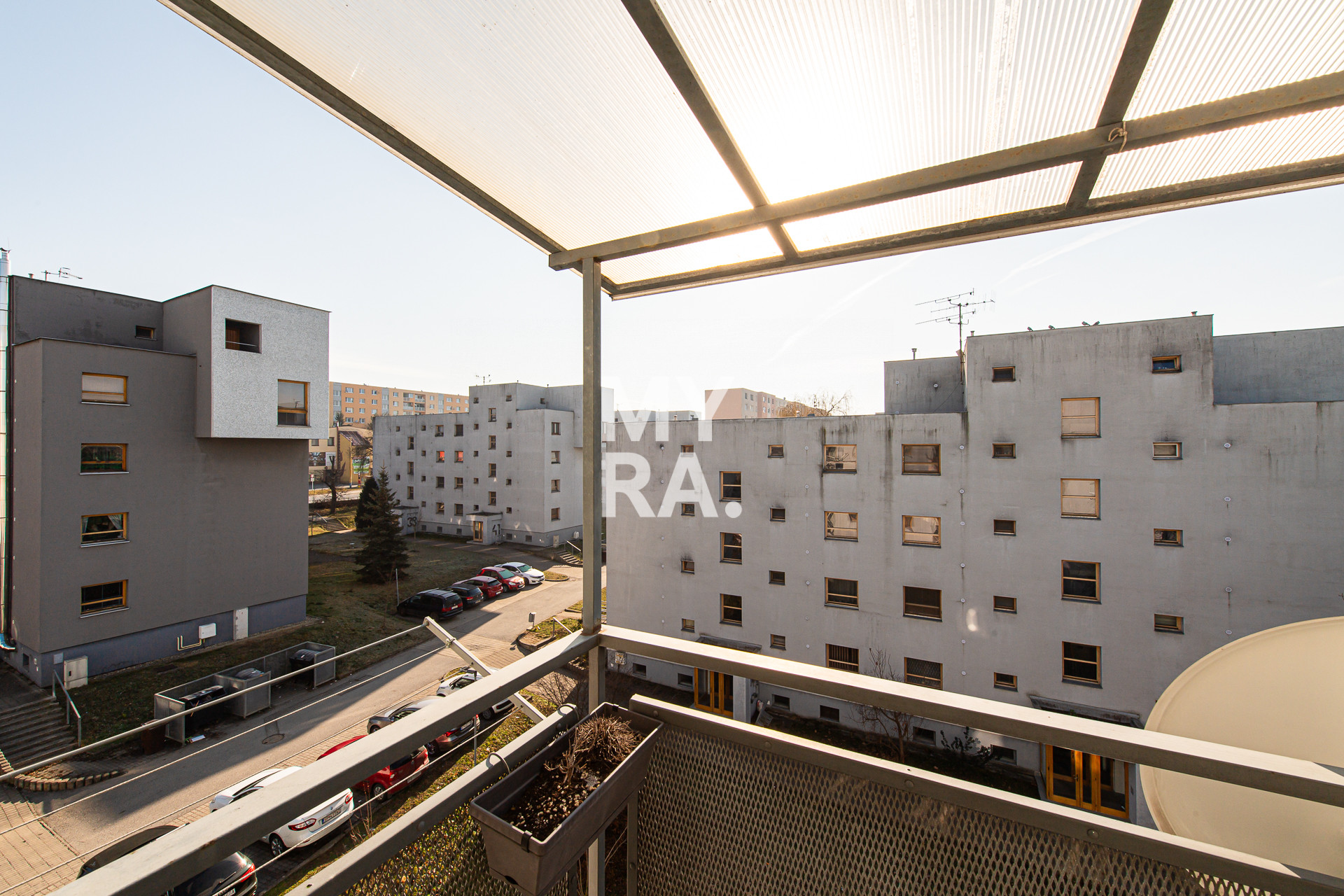 Byt pozostáva z vstupnej chodby, obývacej izby s výstupom na balkón, samostatnej izby, kuchyne, ktorá bola upravená tak, aby vytvorila ďalšiu menšiu spálňu, kúpeľne s WC.