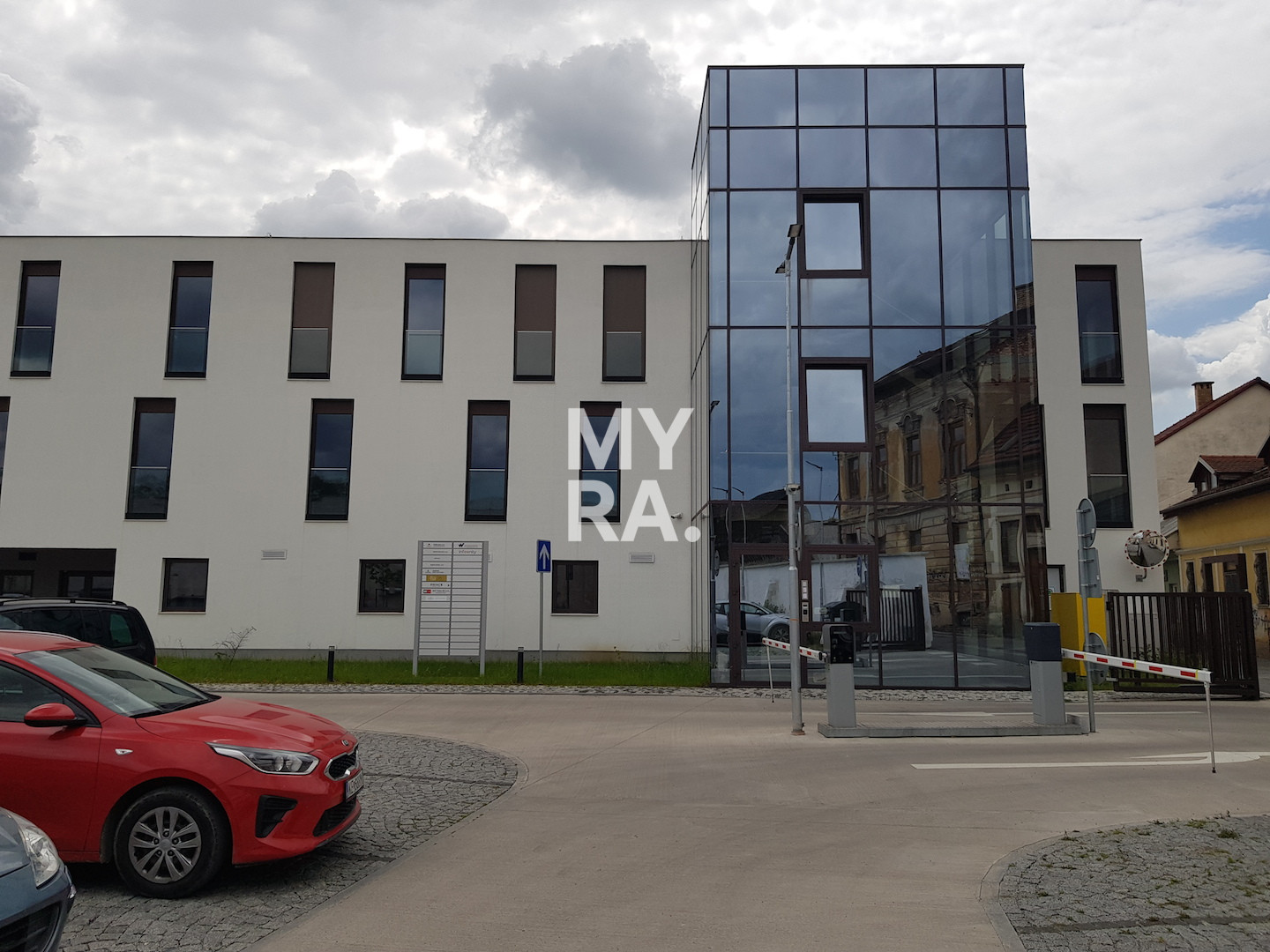 Kancelária je obrátené smerom na tržnicu a orientovaná na sever. Ku kancelárii je možné prenajať si jedno parkovacie miesto.