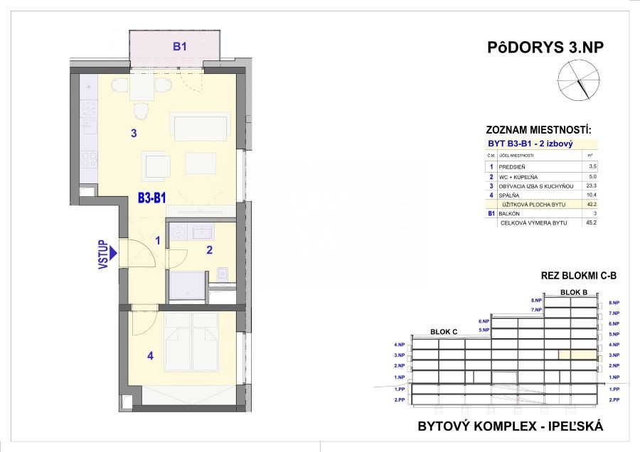 MYRA. Košice a Ing. Timošová Silvia Vám ponúka na predaj 2-izbový priestranný holobyt B3B1 v novostavbe IPEĽSKÁ na sídlisku Terasa v Košiciach pri Univerzitnej nemocnici L. Pasteura Košice. Bytový komplex IPEĽSKÁ ponúka v prvej etape 74 bytov s terasami a balkónmi, 118 parkovacích miest v podzemnej garáži a 71 pivníc. Projekt budú tvoriť dve samostatné budovy, ktoré budú mať 8 nadzemných podlaží a 2 podzemné podlažia vzájomne prepojené podzemným parkoviskom. Súčasťou Bytového komplexu IPEĽSKÁ je aj 5 obchodných, nebytových priestorov na prízemí (1.NP).