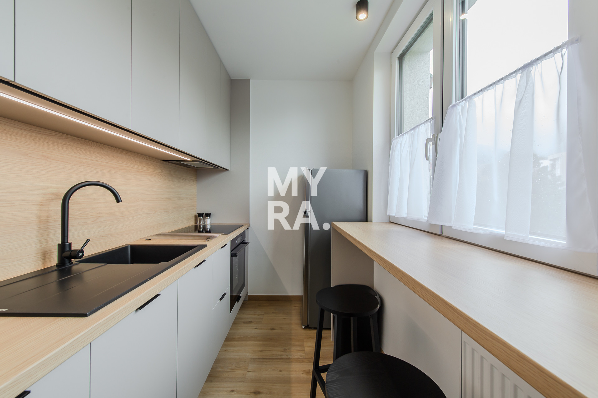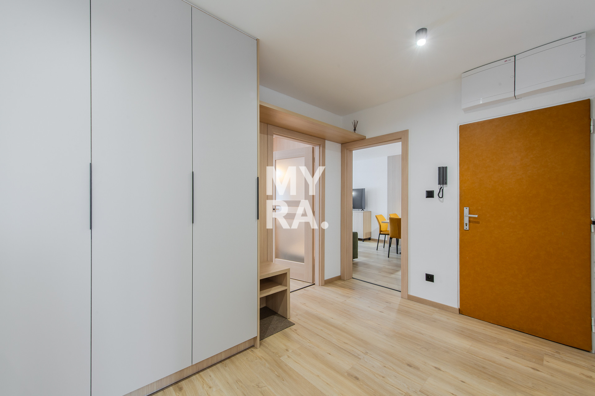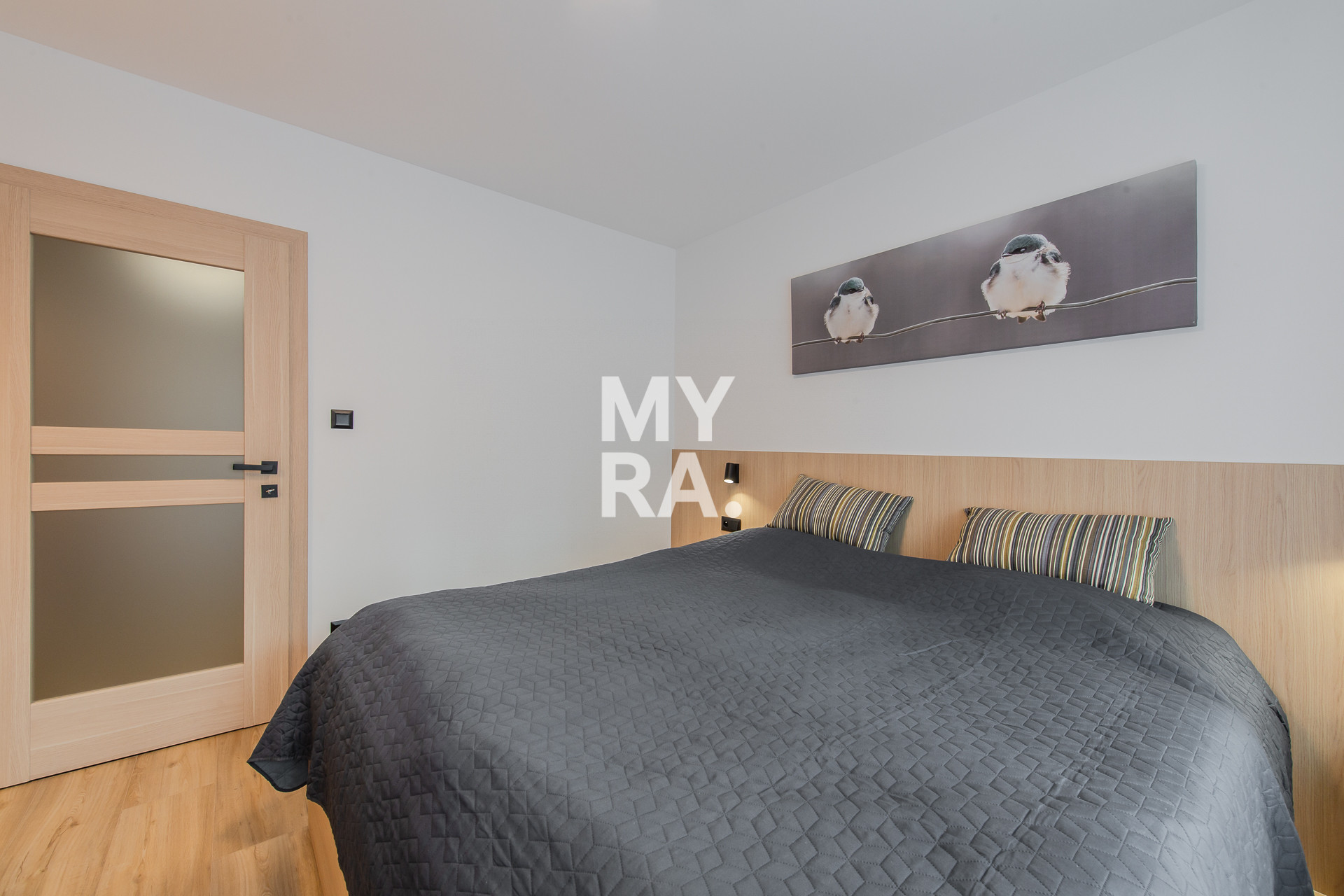 Vybavenie: moderná kuchyňa so vstavanými spotrebičmi (indukčná varná doska, rúra, umývačka riadu, chladnička), práčka, kvalitný nábytok a pripojenie na optický internet.