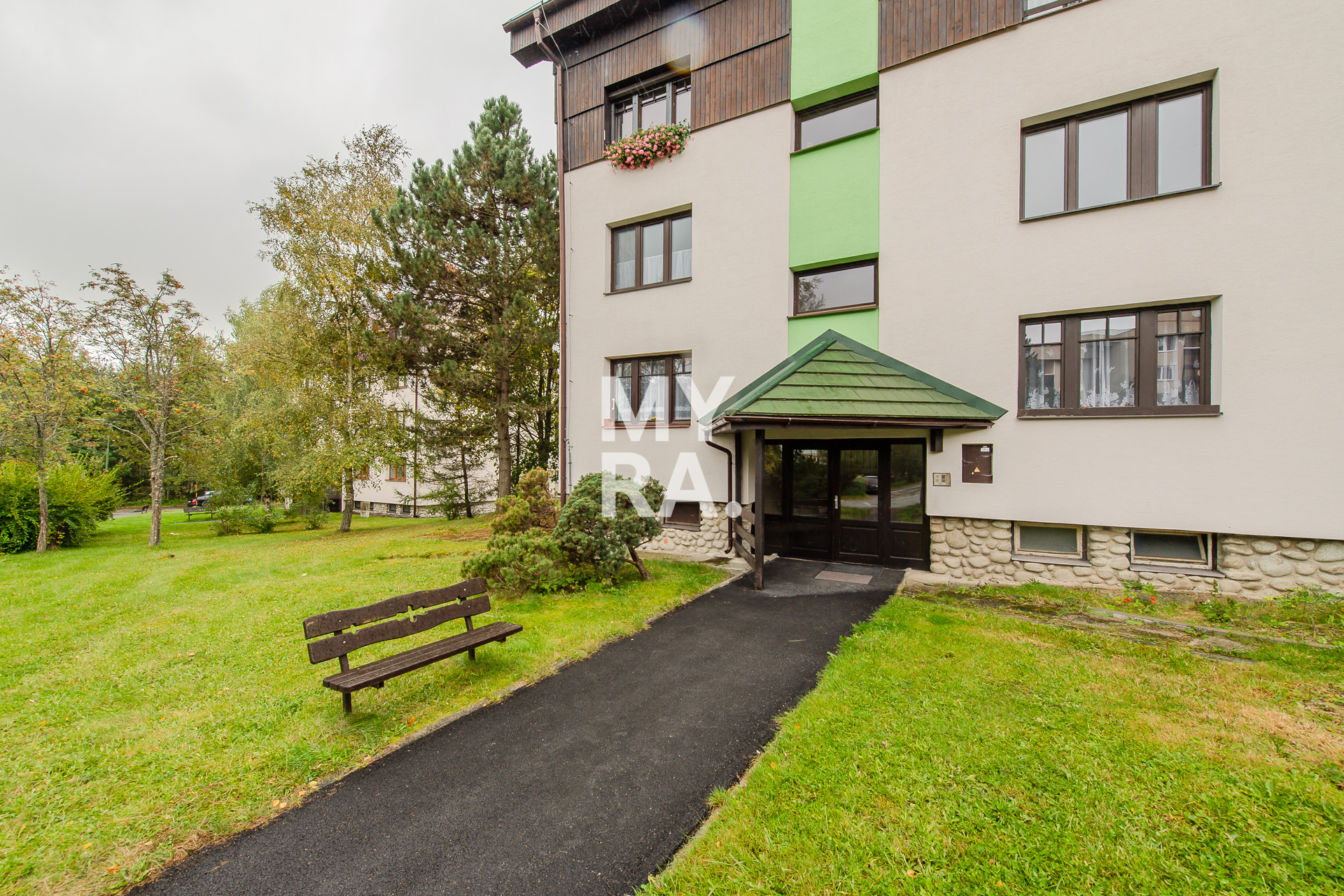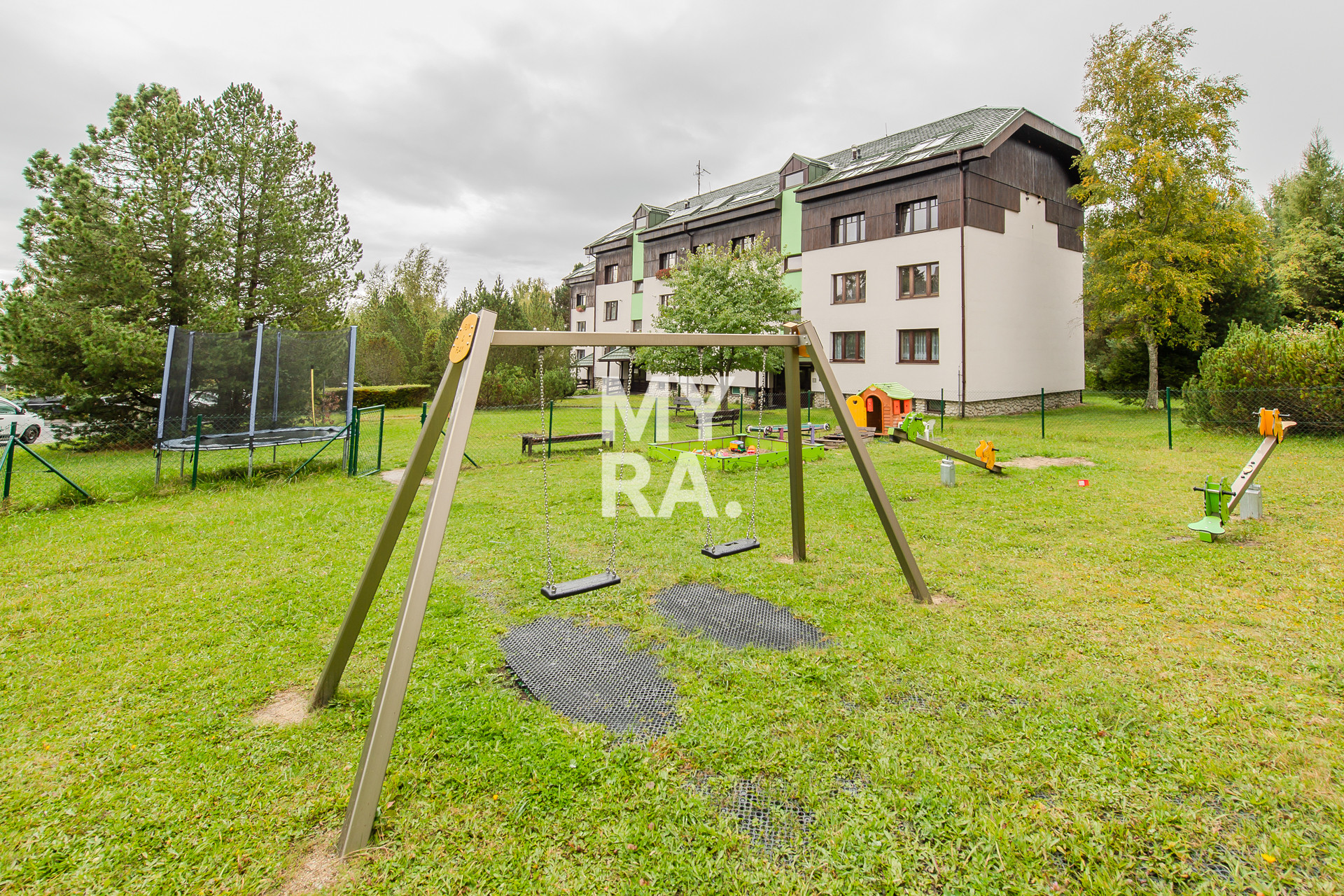 Apartmán s celkovou výmerou 55 m² (vrátane loggie 3 m²) sa nachádza len 100 metrov od zastávky Tatranskej elektrickej železnice (TEŽ), ktorá ponúka pohodlné spojenie s najatraktívnejšími časťami Tatier. V blízkosti sú potraviny, multifunkčné ihrisko, detský lyžiarsky svah aj turistické trasy.