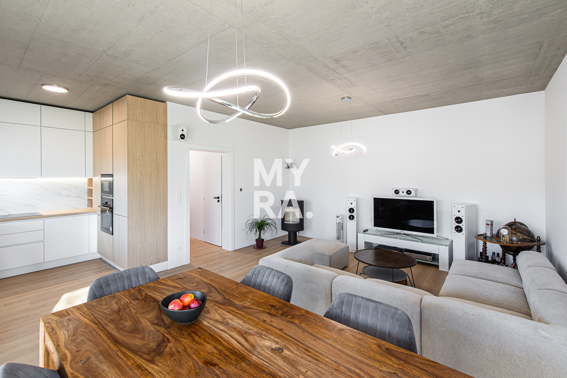 - veľká obývacia izba spojená s kuchyňou a jedálňou