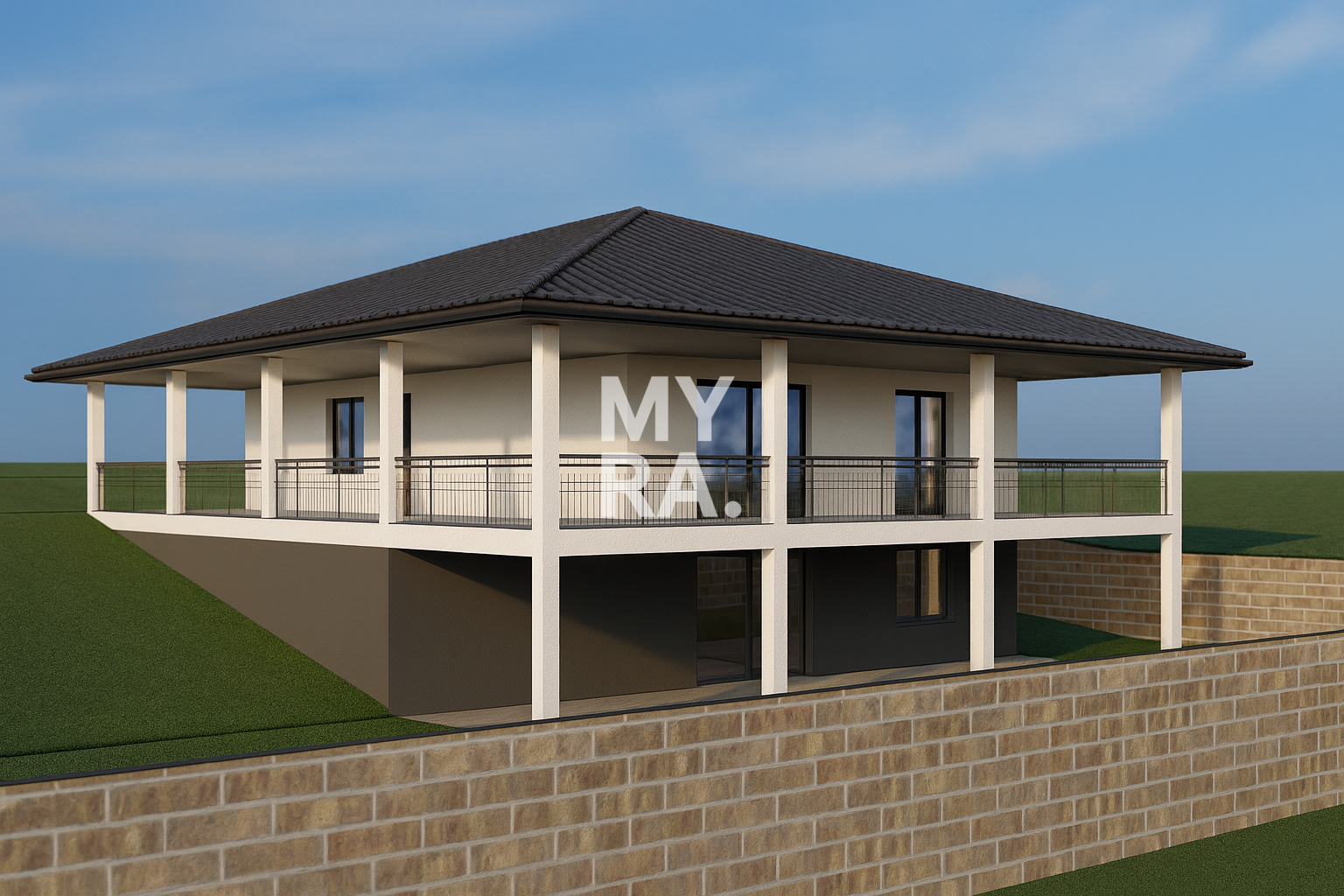 - Suterén: chodba, 2× komora, 3× sklad, terasa – 120,2 m²