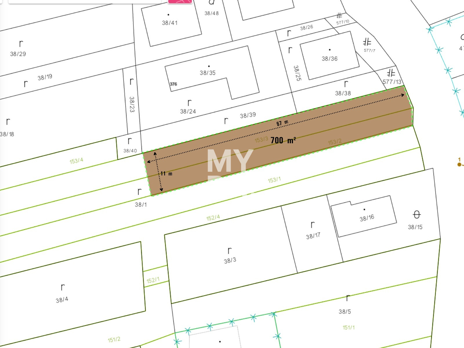 Rozmery pozemku umožňujú realizáciu úzkeho bungalovu alebo moderného poschodového domu, čo ponecháva dostatok priestoru na záhradu a terasu.